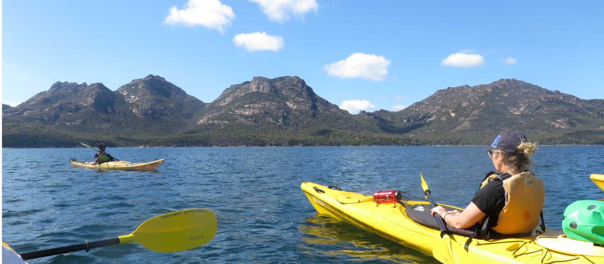• Kayaking in Coles Bay beneath the Hazards