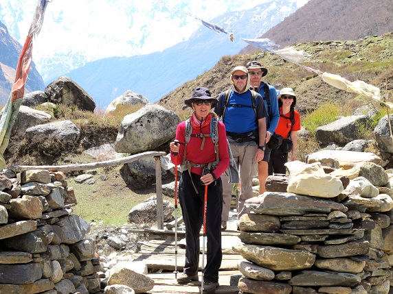 For breakfast, we enjoyed some delicious porridge, toast, omelet and tea. Yum! We were full and ready for a good morning trek. Outside it was crisp, clear, cold and gorgeous! We could see the Langtang Nuru Mountain to one side and Ganesh (holy mountain) to the other.